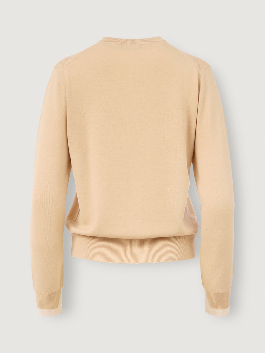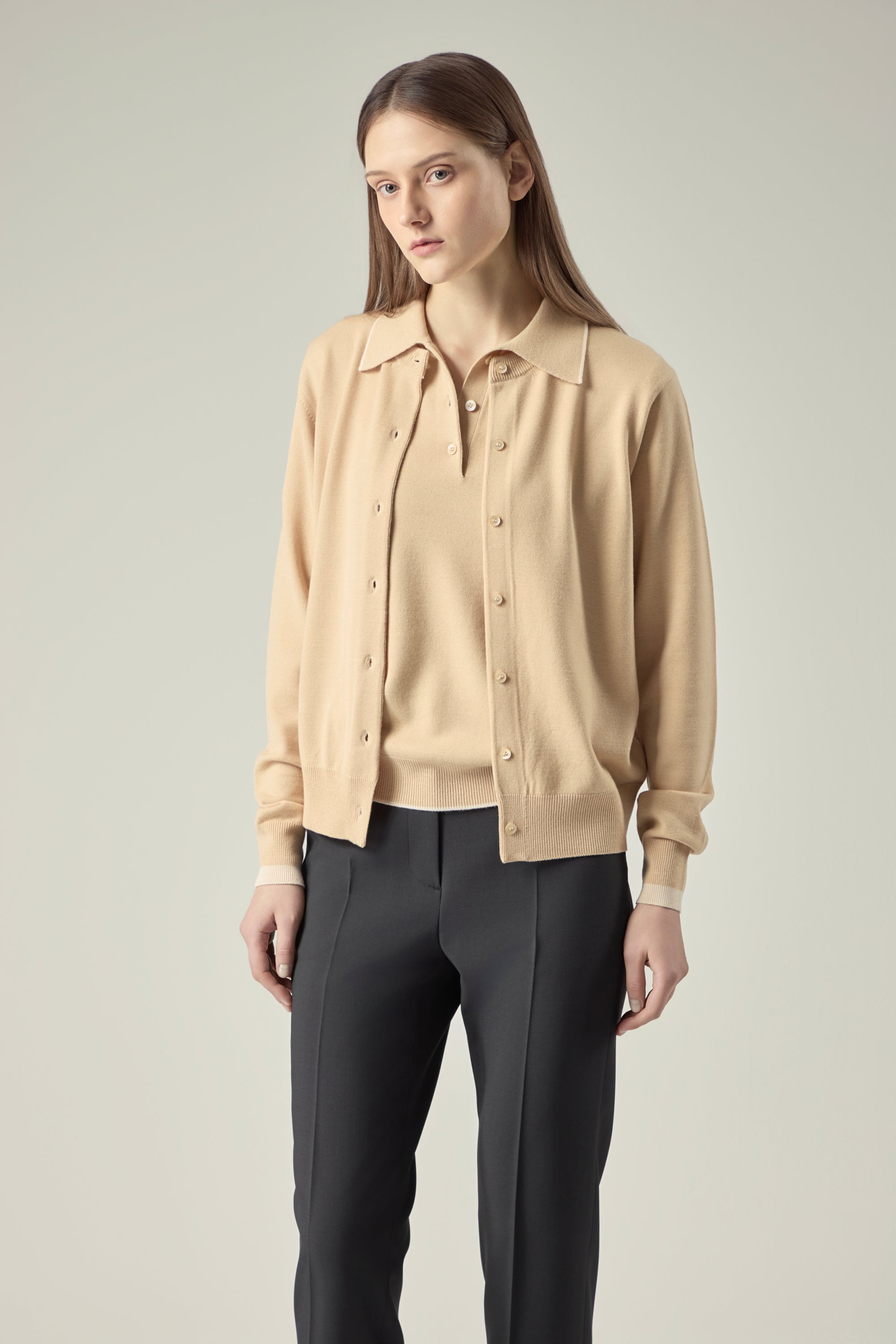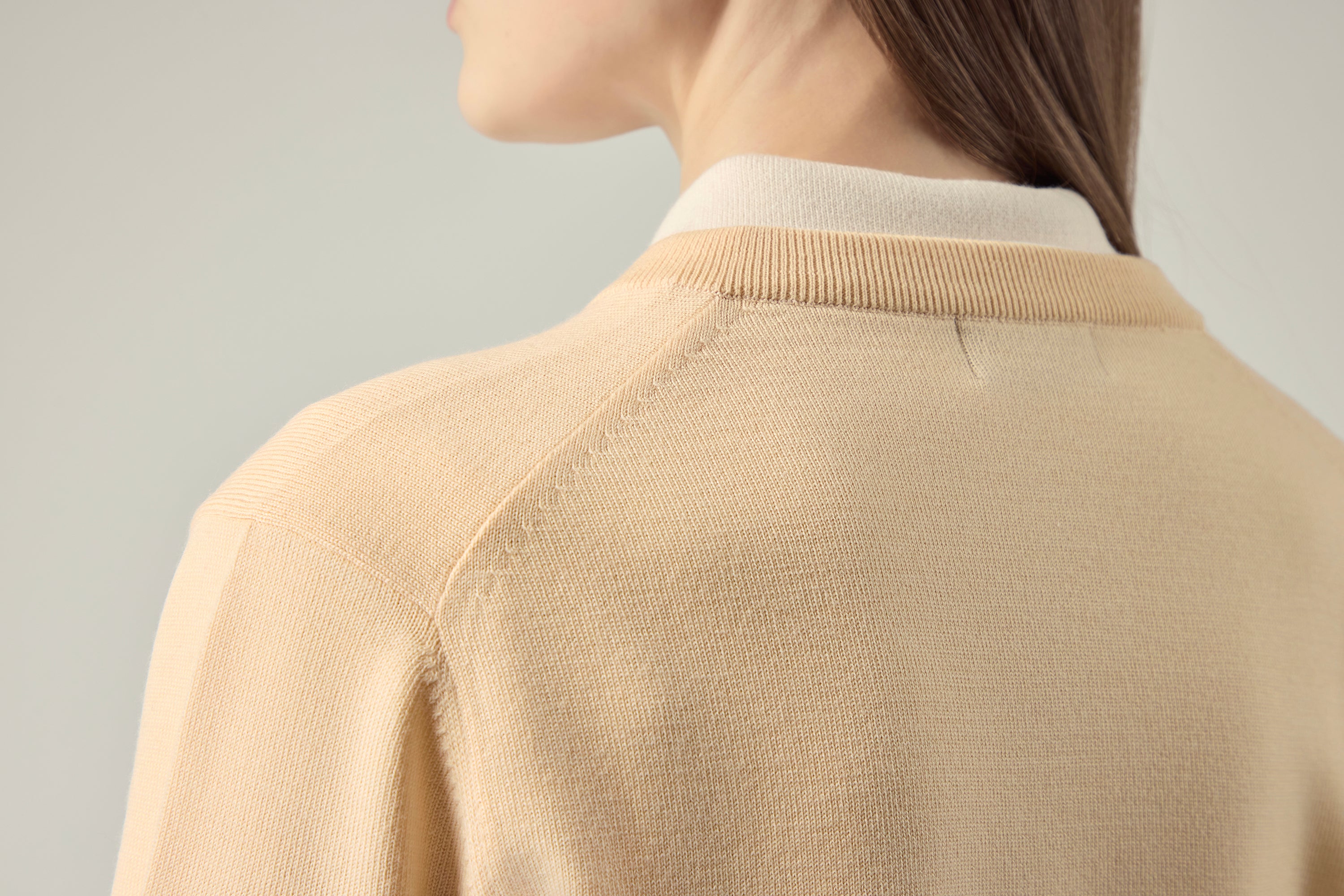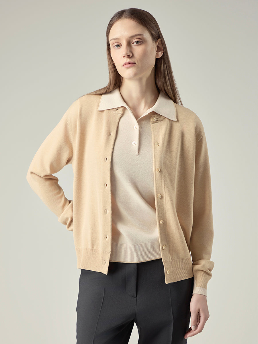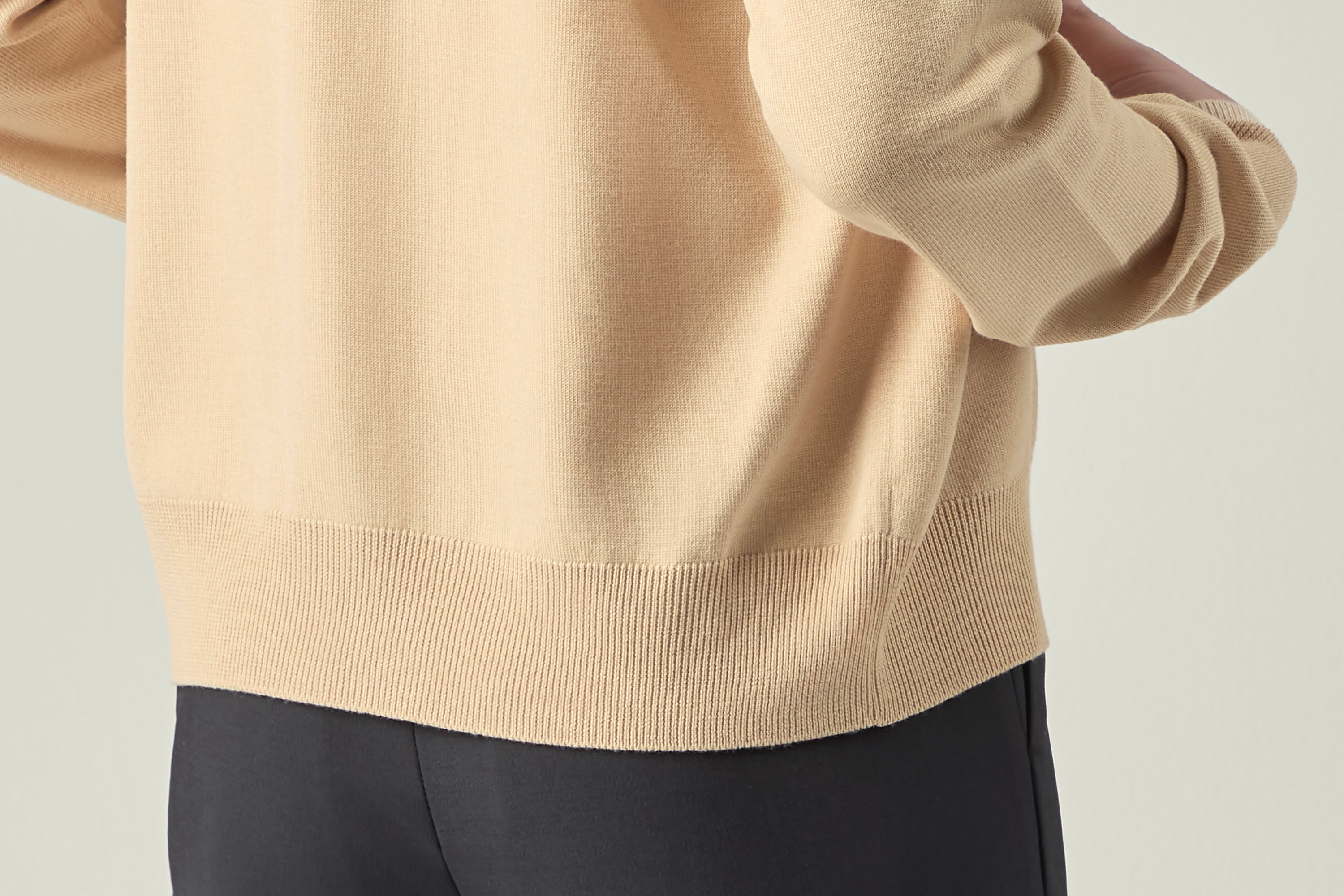 A refined crewneck cardigan crafted from extrafine Merino wool and viscose. Soft and weightless, it carries a clean silhouette that balances structure with ease. Each colour is custom-dyed for Elune Mode, created to hold quiet depth and softness that shifts beautifully with changing light.