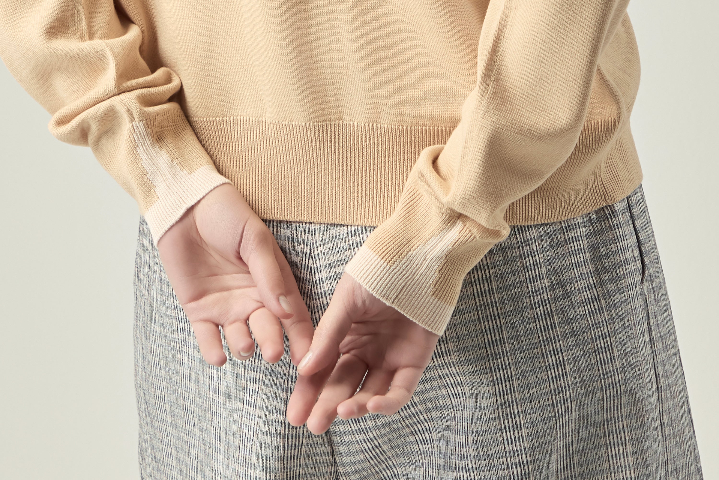Knitted in a 14 gauge 2 end structure using Nm 2/60 yarn for a fine, compact texture that maintains definition and drape.