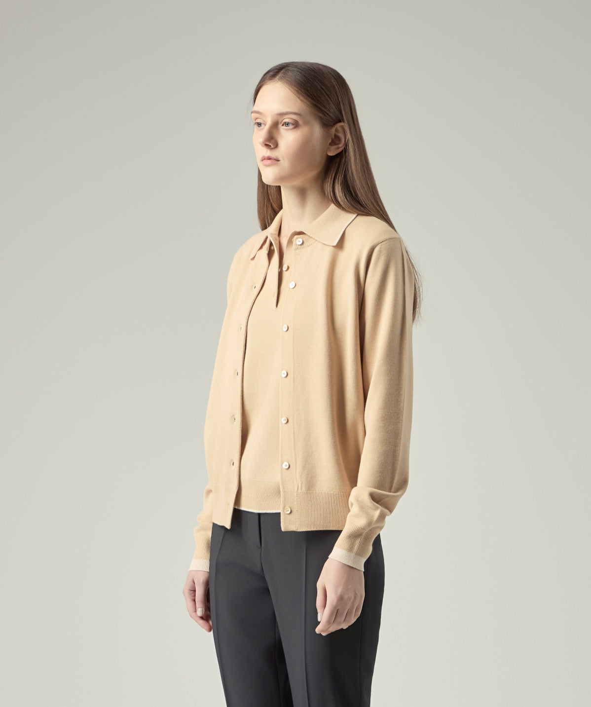 Fine contrast trim at the cuff and hem for subtle articulation.