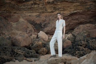The silhouettes are calm in line, gentle in presence, yet always assured. They move with the body instead of against it, creating space rather than restriction. Colours are taken from the softer side of nature, tones that breathe easily in the light, shades that remain familiar as the seasons turn.