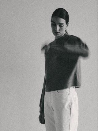 Knitted from 100% Extrafine Merino Wool in a fine 10-gauge structure, this crewneck captures a quiet balance between softness and form. The neckline rests close to the neck, framing a clean and modern silhouette. An outer seam runs along the sleeve, creating a precise vertical line through the body. The surface feels smooth and gentle against the skin, light to wear yet balanced in form, giving a sense of ease from the first touch.