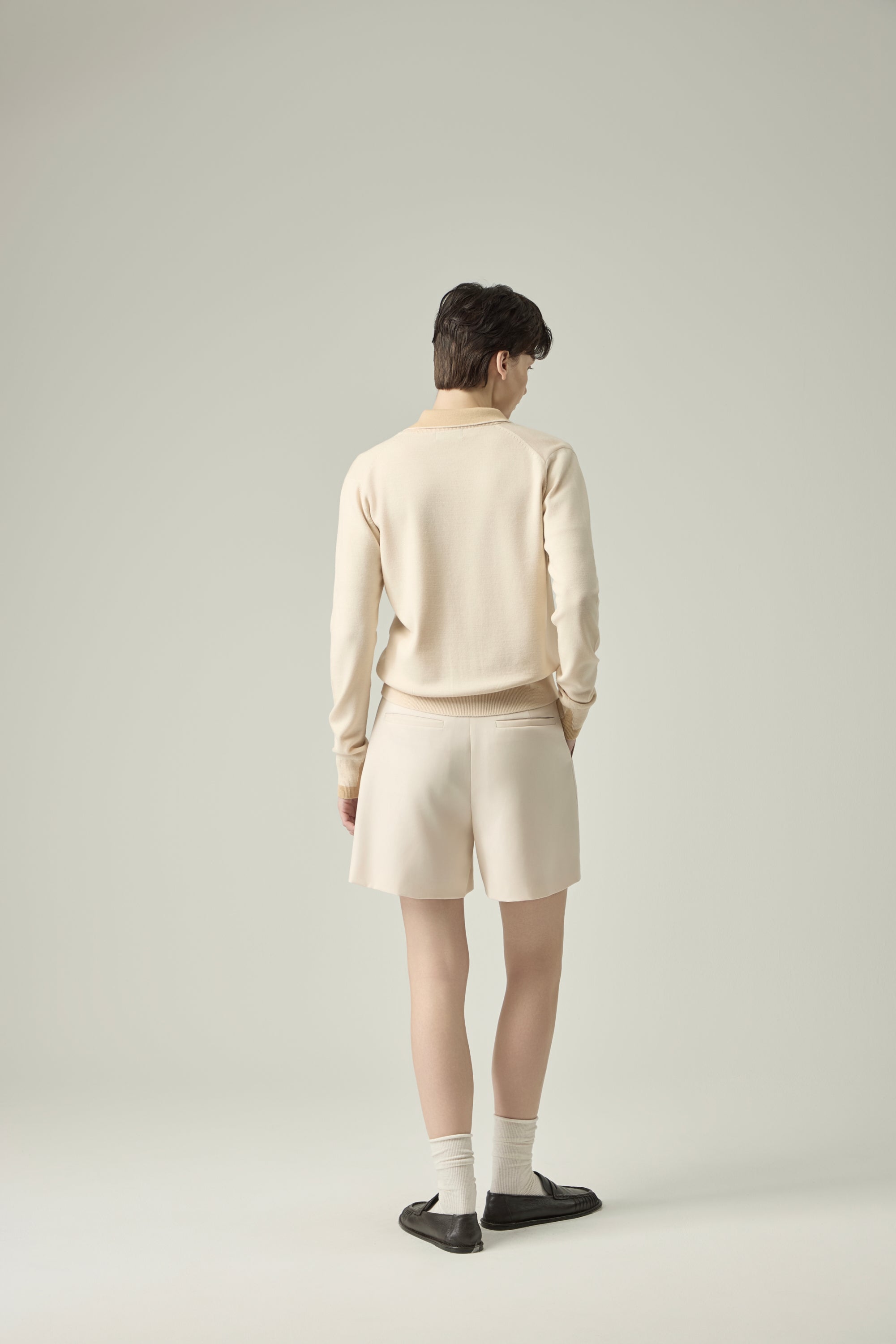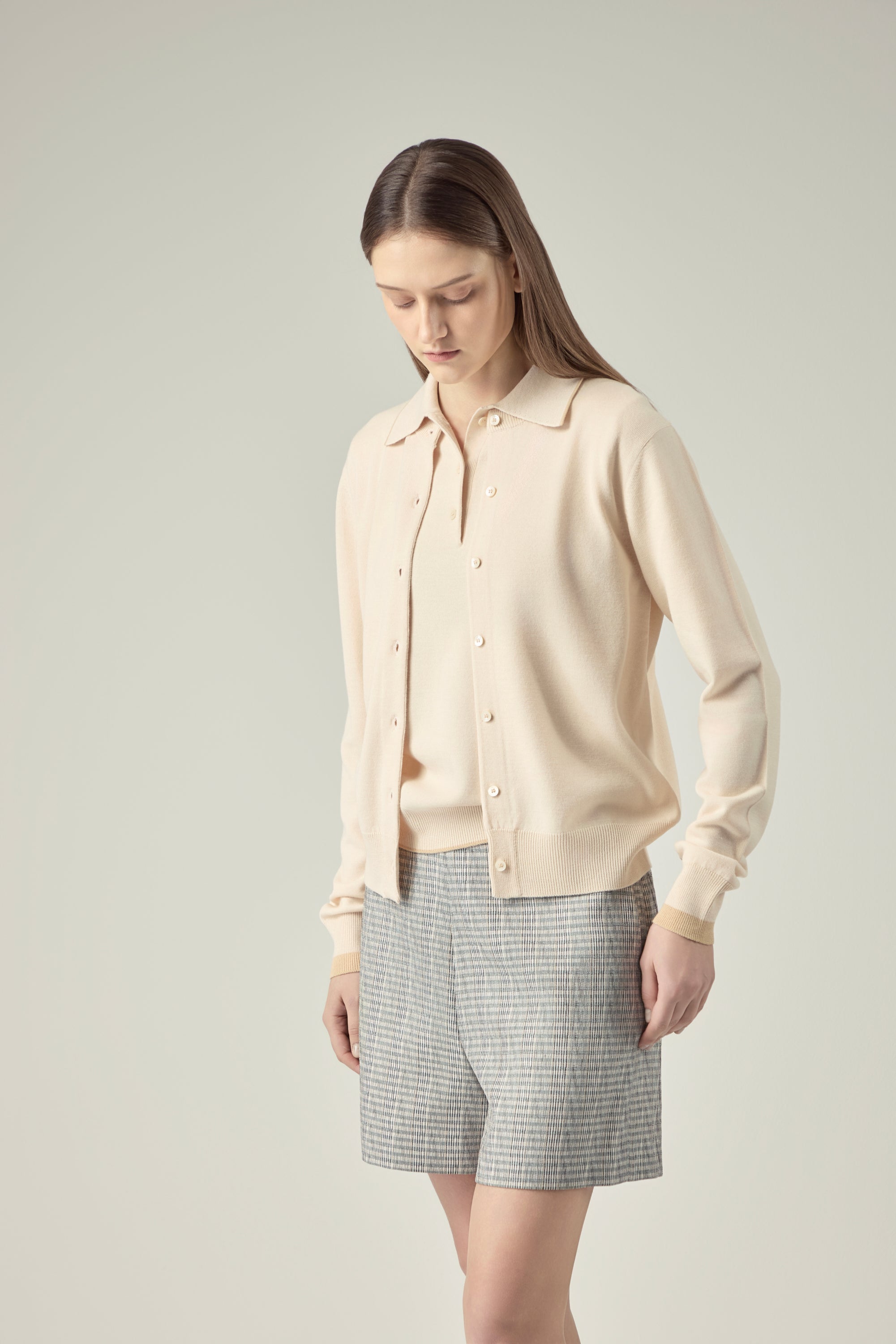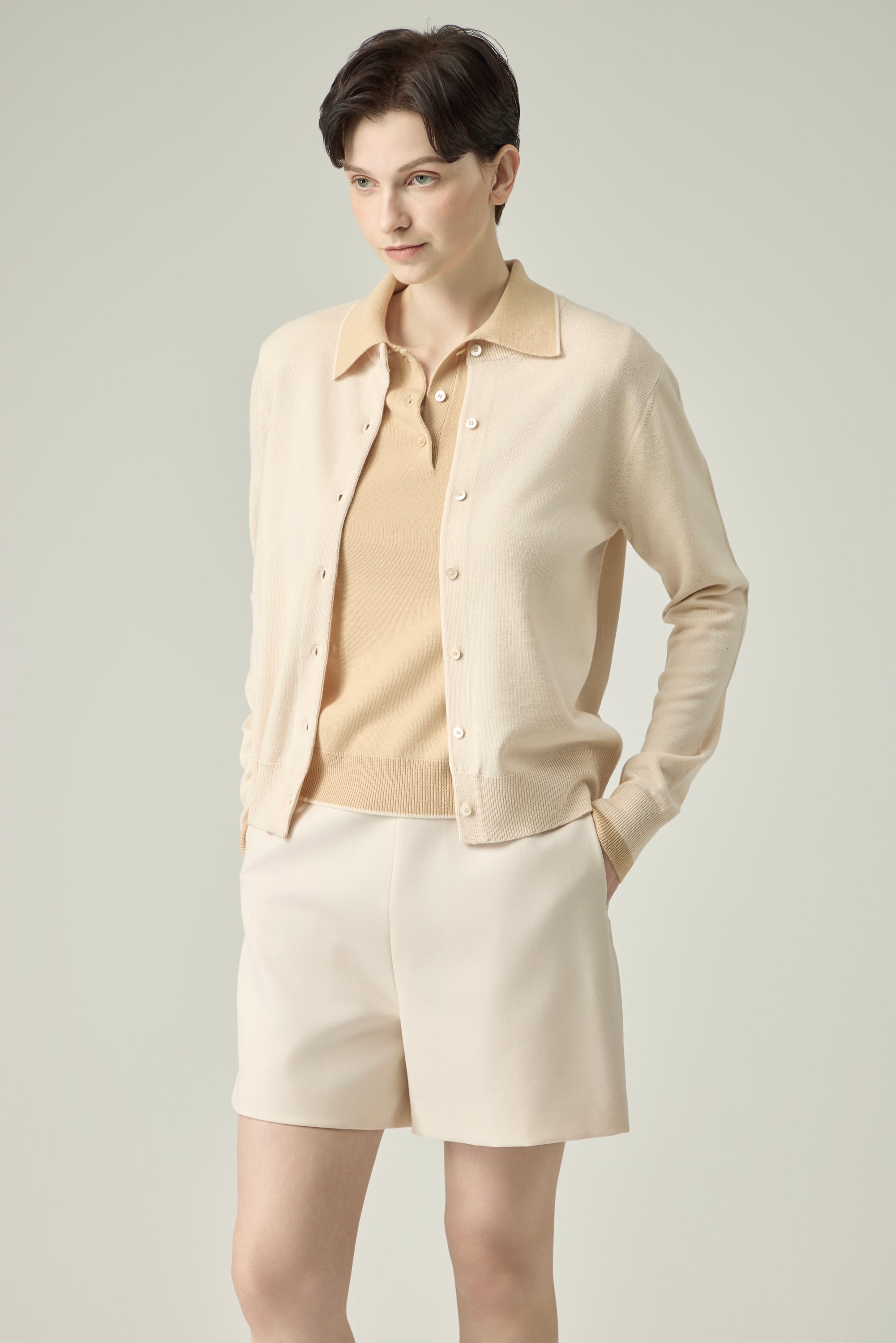 A refined crewneck cardigan crafted from extrafine Merino wool and viscose. Soft and weightless, it carries a clean silhouette that balances structure with ease. Each colour is custom-dyed for Elune Mode, created to hold quiet depth and softness that shifts beautifully with changing light.